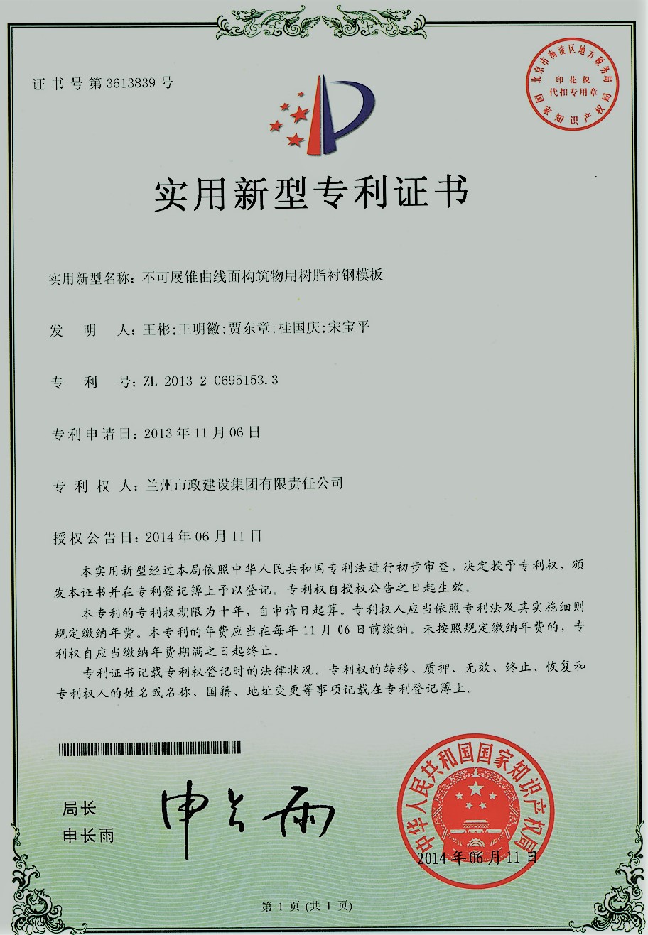 不可展錐曲線面構(gòu)筑物用樹脂襯鋼模板