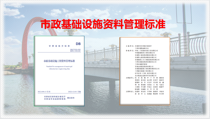 為提高我省市政基礎設施工程建設資料管理水平,甘肅省住房和城鄉(xiāng)建設廳、蘭州市建筑業(yè)聯(lián)合會主持編撰了甘肅省地方標準《市政基礎設施資料管理標準》(DB62/T 3232-2022),公司作為甘肅省市政工程行業(yè)的龍頭企業(yè),應邀參加該標準的編制工作,該標準目前已出版發(fā)行。