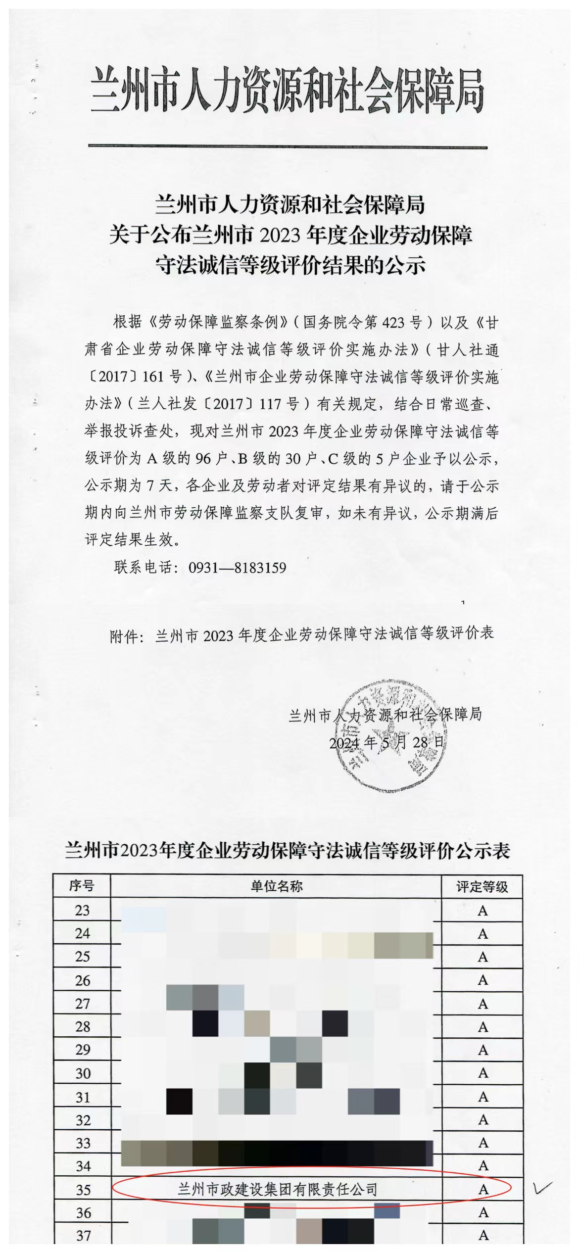 勞動(dòng)保障守法誠(chéng)信A級(jí)企業(yè)的評(píng)選,是對(duì)企業(yè)在勞動(dòng)法律法規(guī)遵守、勞動(dòng)保障制度建設(shè)、員工權(quán)益保障等方面的綜合評(píng)價(jià)。公司2018年至2023年連續(xù)被評(píng)為“蘭州市勞動(dòng)保障守法誠(chéng)信A級(jí)企業(yè)”,充分體現(xiàn)了公司踐行企業(yè)擔(dān)當(dāng)、提高勞動(dòng)保障管理水平的工作成果。公司始終堅(jiān)持以人為本的發(fā)展理念,認(rèn)真貫徹執(zhí)行勞動(dòng)保障法律法規(guī),不斷完善勞動(dòng)和社會(huì)保障工作,不斷優(yōu)化員工崗位激勵(lì)機(jī)制,提高員工保障水平,提升員工的獲得感、幸福感,基層員工收入持續(xù)提高,員工福利保障體系更加完善。