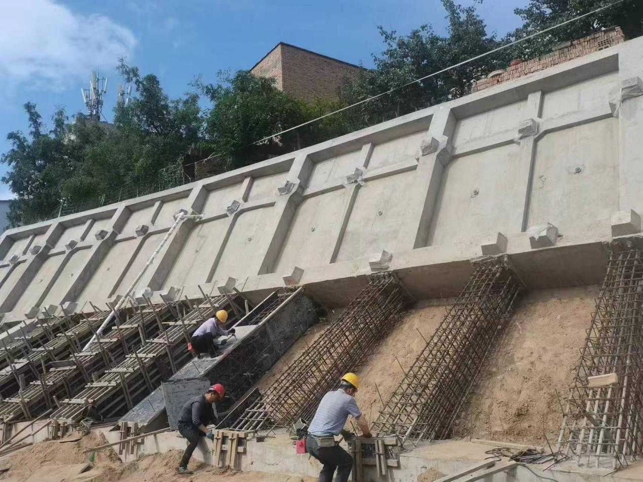 蘭州博文科技學(xué)院操場(chǎng)邊坡加固工程,邊坡加固全長(zhǎng)313.2米,邊坡高12米。面對(duì)工期緊、任務(wù)重、施工難度大等困難,項(xiàng)目部全體人員群策群力,履職盡責(zé)、團(tuán)結(jié)協(xié)作,以確保安全、質(zhì)量為前提,搶抓施工進(jìn)度。特別是進(jìn)入暑期,利用學(xué)生放假之際,項(xiàng)目部更是搶抓時(shí)機(jī),大干快上,扎實(shí)完成好各項(xiàng)施工任務(wù)。截至目前,累計(jì)完成土釘墻支護(hù)2160m;擋墻反壓土9986.37m3;框架格構(gòu)后背填筑水泥土503m3;框架格構(gòu)21.6m,加固錨桿、錨索、樁基工程正在全力施工,已完成工程總量的70%。