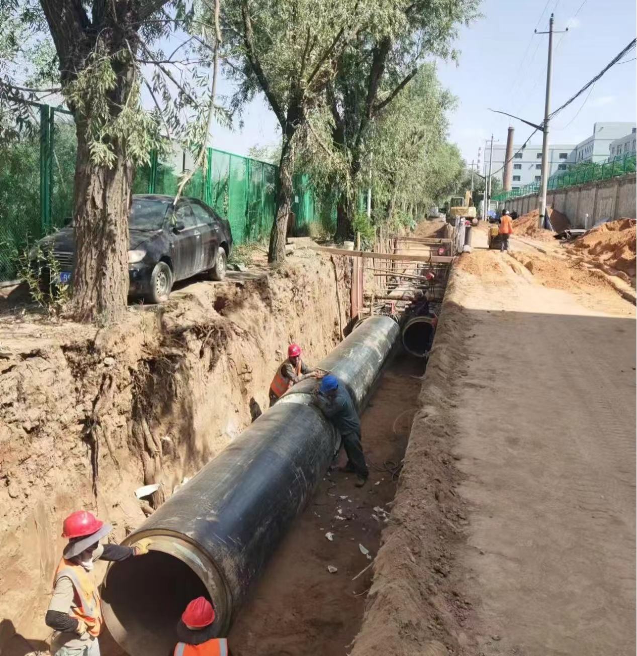 熱電聯(lián)產(chǎn)城市一次供熱管網(wǎng)建設(shè)項(xiàng)目(西固區(qū))施工工程T018/T020(寺兒溝管網(wǎng))管道工程,起點(diǎn)位于北側(cè)大唐熱電廠(蘭石化現(xiàn)狀管線處),終點(diǎn)位于西固中路清水橋東側(cè)綠化所休閑小公園。項(xiàng)目部針對(duì)施工任務(wù)重、工期緊,社會(huì)關(guān)注度高的特點(diǎn),對(duì)施工人員、施工機(jī)械、施工材料提前謀劃,精心安排,既符合工程施工要求,又避免造成人力物力的浪費(fèi)。目前正在施工的蘭州市六十四中門(mén)口段落720米,必須在8月25日(學(xué)生開(kāi)學(xué)前)完工,現(xiàn)有混凝土道路寬度只有6米,溝槽設(shè)計(jì)寬度3.4米,工作面狹小,溝槽土方開(kāi)挖、管材運(yùn)輸、管道回填難度加大,項(xiàng)目部采取分段施工、加班加點(diǎn)保質(zhì)量保工期,截至目前已完成620米的管道安裝,剩余100米確保在工期要求的節(jié)點(diǎn)前完工。